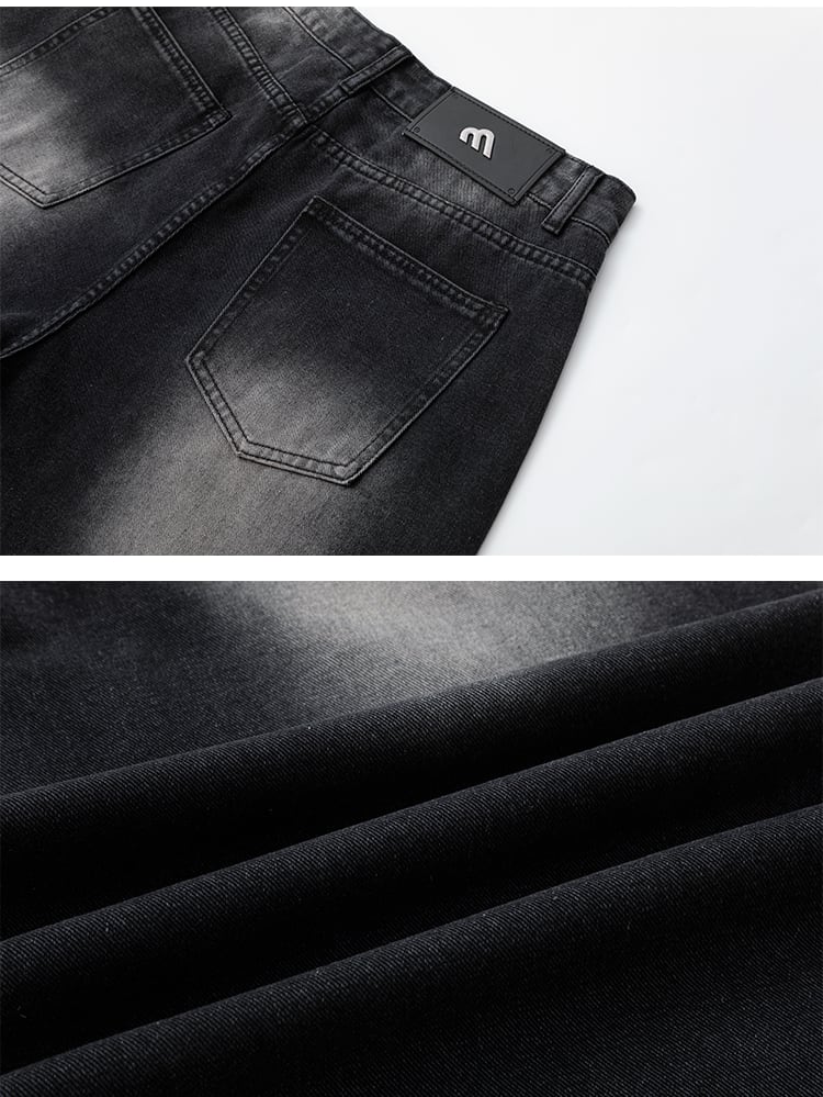 ・上品なウォッシュ加工で仕上げたストレートデニムパンツ。