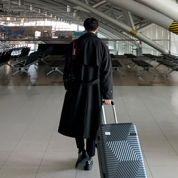 ・韓国系モードスタイルを感じさせるドレープコート。